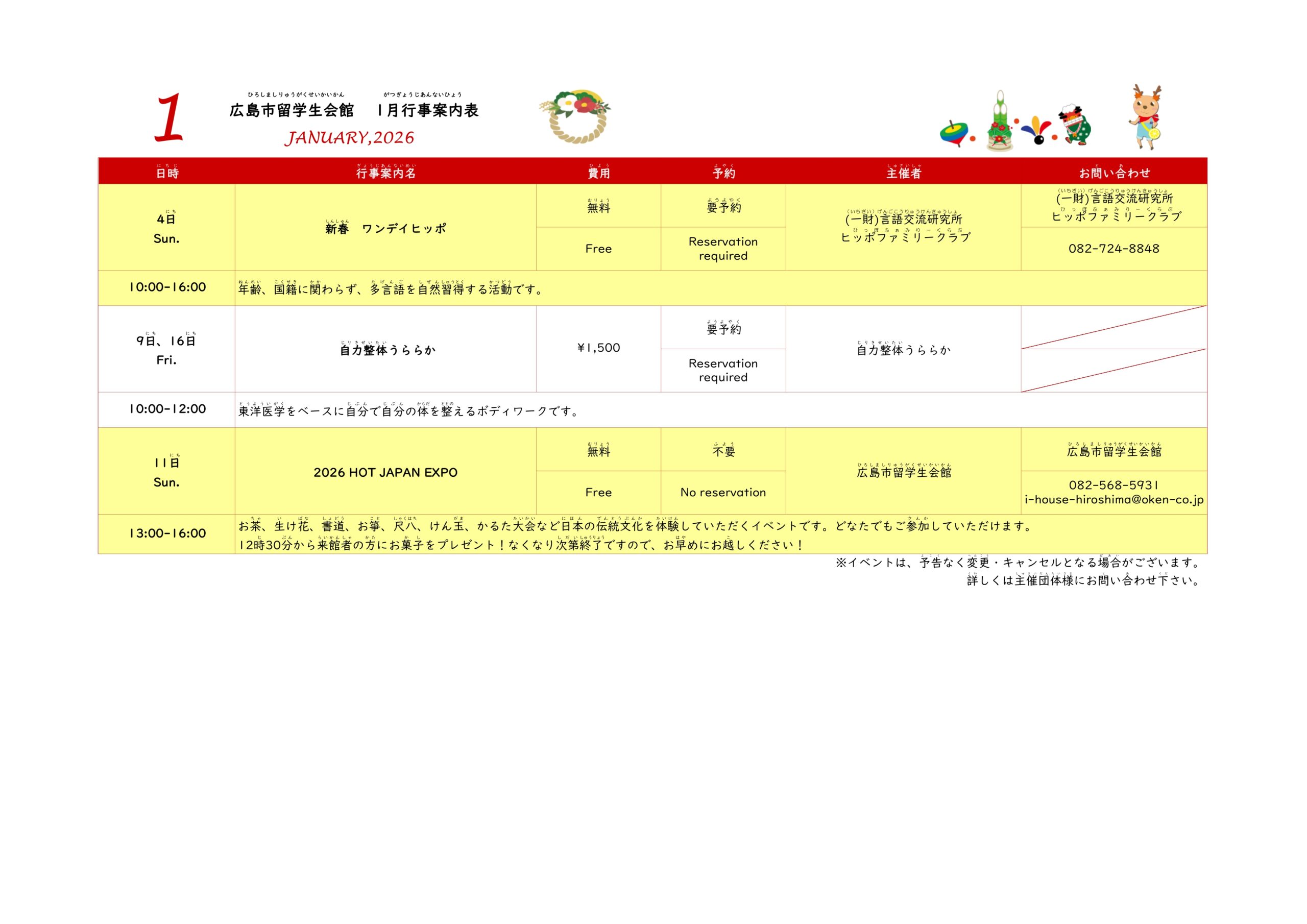 2026年1月行事案内